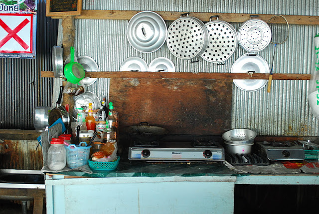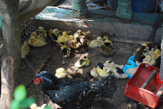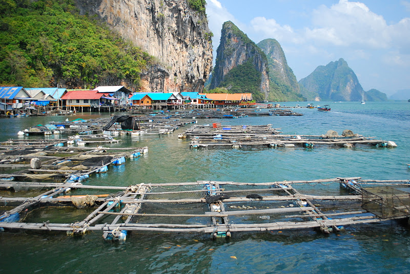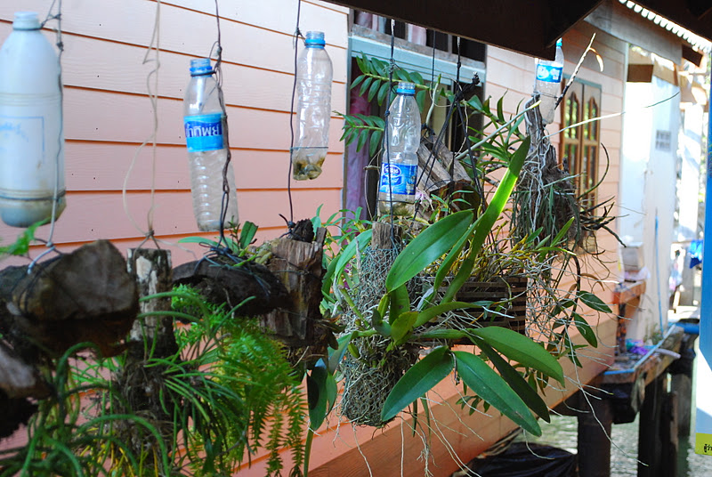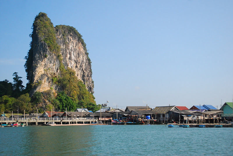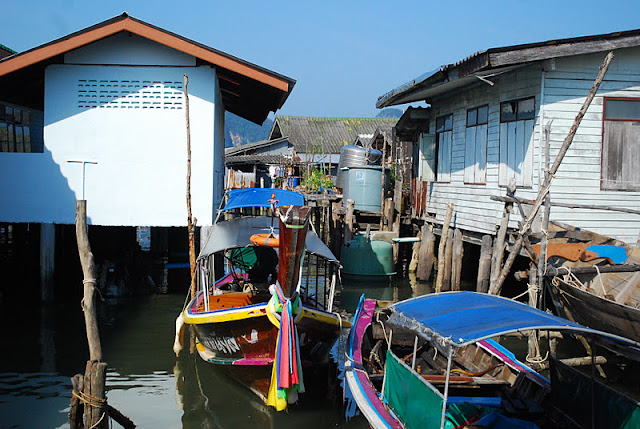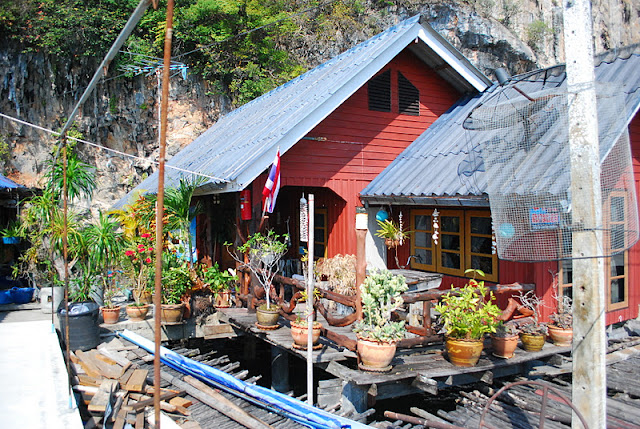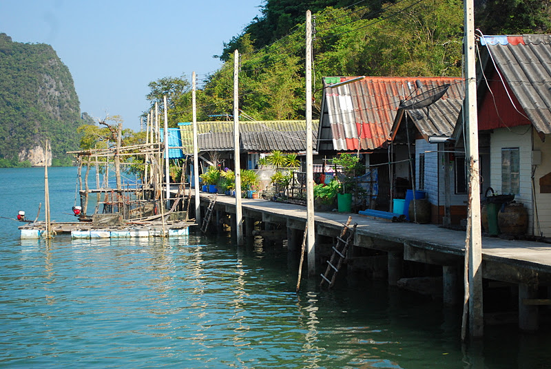 Yesterday morning we took a half-hour boat ride to the floating Muslim fishing village of Panyee. The village is a big tourist destination, with stalls selling cheesy t-shirts and plastic pearl necklaces, but the interesting parts came once you got past the vendors and in to the actual village. We saw salted fish hanging out to dry, ducklings and chickens kept in pens made from old fishing nets, and thousands of potted plants of every variety.