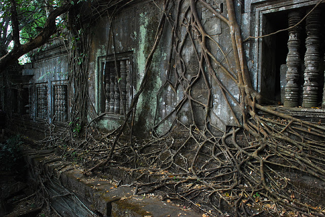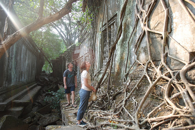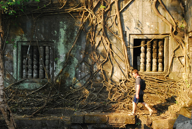 Our last day at the Angkor temples in Cambodia was definitely the most incredible, we went off the beaten path and out into the jungle. Our last stop was Beng Melea, a temple that has almost completely collapsed and the surrounding area was just recently cleared of land mines. You can climb up on the ruins, and make your way around the tree roots and collapsed roofs. We found a local guide to show us what was safe and what wasn't and as the sun set, we clambered around what felt like a grown-up playground.