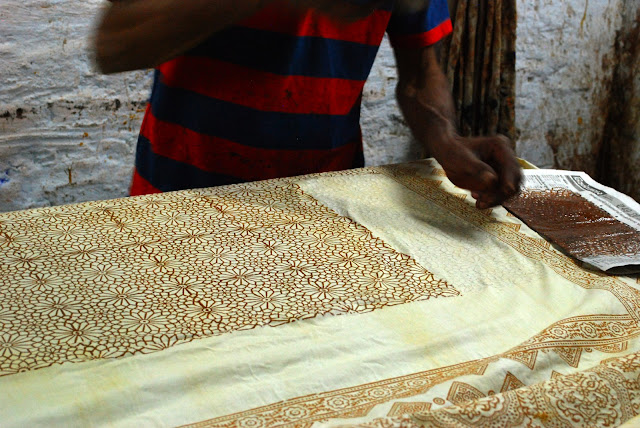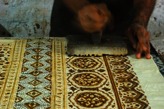 The entire process is done by hand, from me carving the prototype in the US, to block carvers in India carving the hardwood block, to block printers printing the cotton, to the hand stitching holding the two layers together.