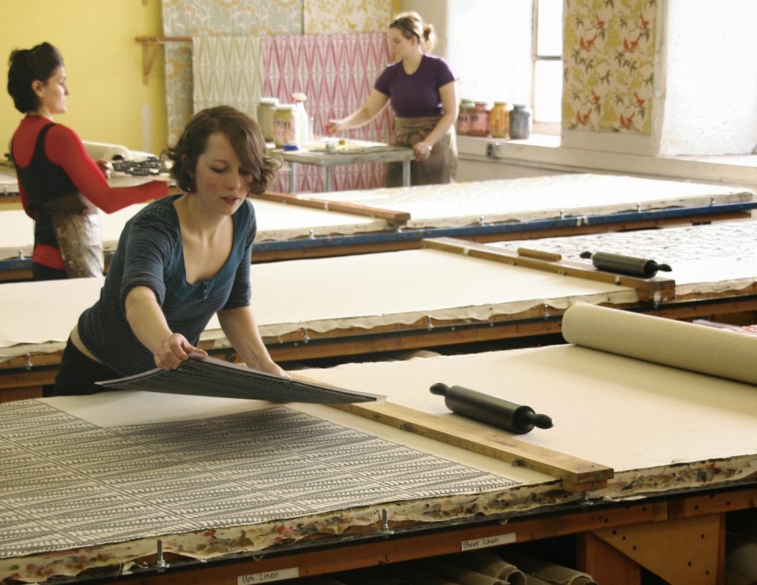 Galbraith and Paul, one of the only companies still doing large-scale block printing in the United States, just came out with a new line of wallpapers. Each piece is printed by hand in a variety of colors, and has a coordinating block printed fabric that goes with it (like in the photo below). Now I can get started on my all-block printed house. Would that be too much?