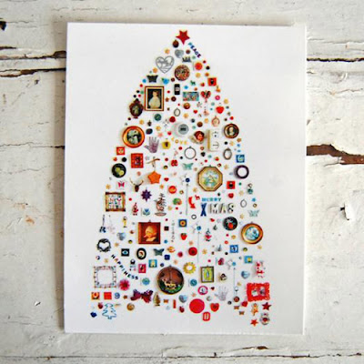 I just stumbled on these Christmas cards from alltheluckintheworld via Poppytalk and I love the idea of making a collage for the front of your Christmas cards. Or any cards. It looks like it came together so easily but it probably took forever to make it look that way. It would be cool to put together a collage like this using things you had found in the last year, so start planning now for next Christmas!