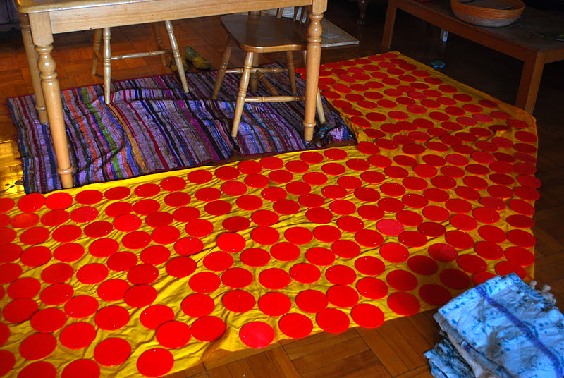 This is what the floor of my apartment will look like for the next few weeks, it turns out that painting 350 ornaments takes up a lot of space. A huge thank you to my amazing intern Kelly for doing this coat of paint!