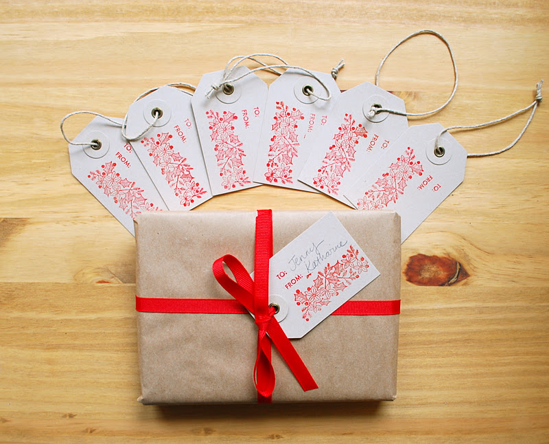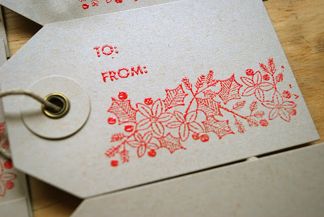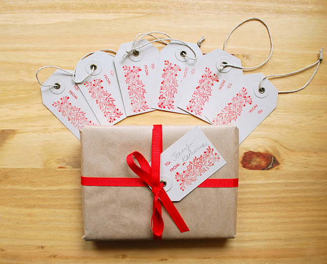 I'm also offering gift tags this year: they are embossed, which means they have a raised, shiny texture. I love the way they look on present!