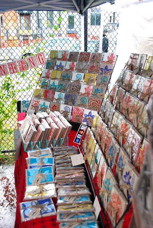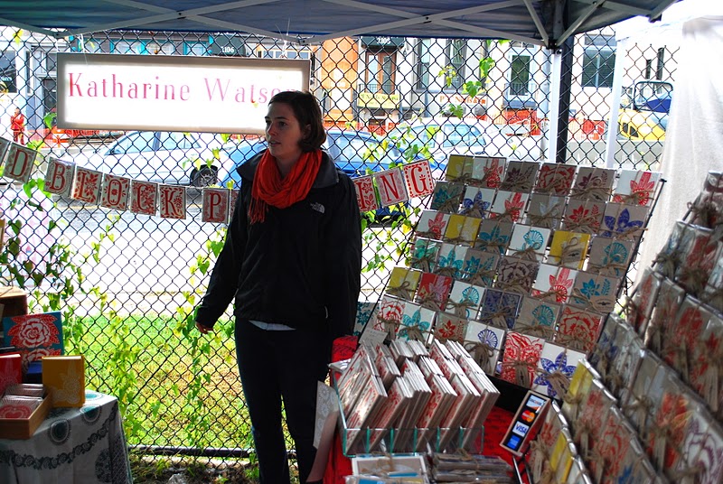 My favorite part of the day was the sale bin: I had a few items that have been sitting around for the last few months that were either slightly damaged (prints with big mistakes just go in the trash) or hadn't sold, so I decided to put them on sale. That, and dropping a handful of pieces into a puddle as we were loading in meant that I had a nice little box full of "factory seconds." Instead of pricing them, I put a "Name Your Price" sign on the box and people could offer any amount they felt was reasonable. Nobody touched the box for the first few hours, and people said they were afraid to make an offer, but eventually people got into it and it was really fun to have people buy something for what they thought it was worth. The entire box was sold by the early afternoon, and for pretty similar prices to what I would have labeled anyway!