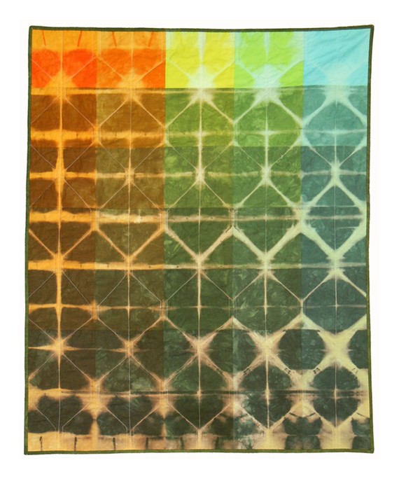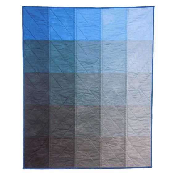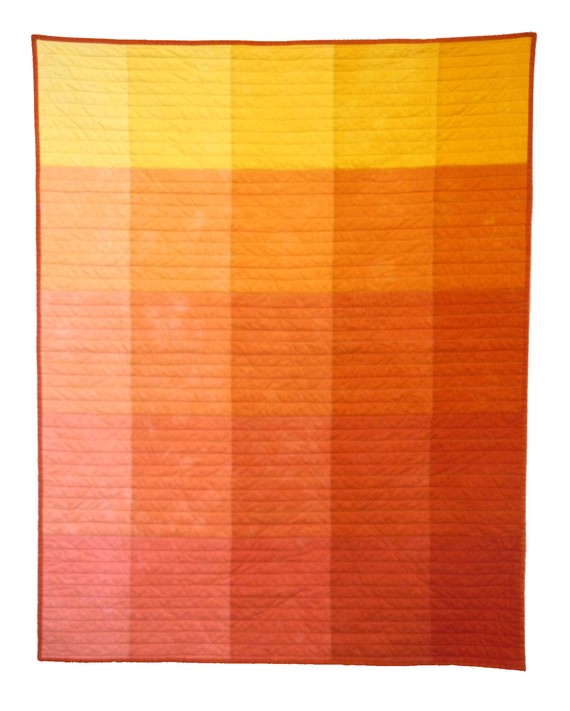 I love quilts, but it is rare to see something that goes beyond the fabric-store-floral look. When I found these quilts by Kim Eichler-Messmer, I was amazed at the way she uses dyes and shibori techniques to create these amazing patterns and colors. The gradients are inspired by paint chips, and she pulls off the designs beautifully. I think it's the simplicity that makes them stand out from other quilts, although you can tell that this kind of simplicity takes hundreds of hours to pull off.