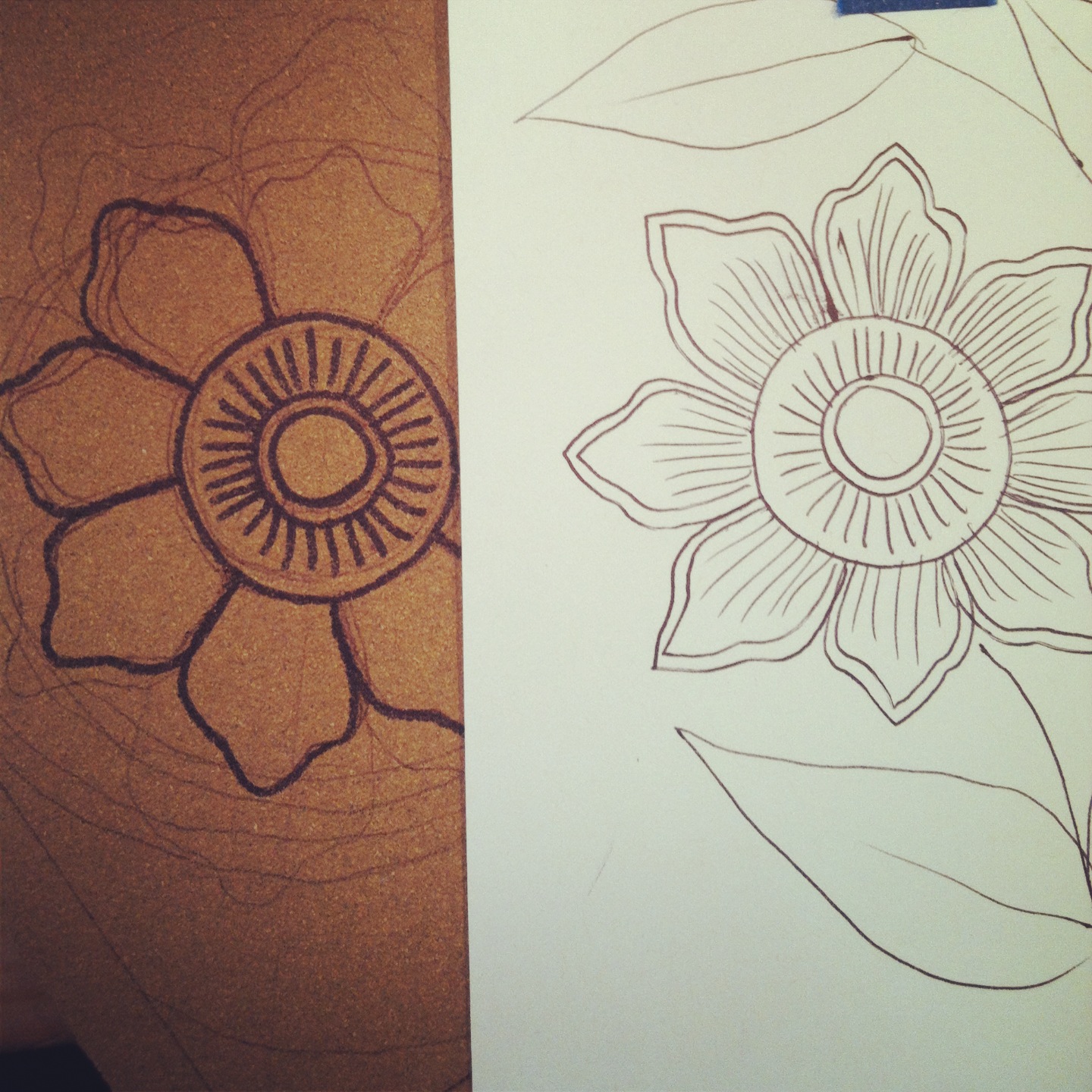 It's only February, but I'm already busy working on my new catalog that will be coming out in May. That means lots of new designs, carvings and products are in progress right now. I thought I would share some photos of my design wall, where I've been hanging all my sketches of new designs. I start by sketching out all my ideas (either half-finished or ready to carve) on paper, and then hanging them all up together. Then when I am ready to start carving, I'll head to the wall of designs and choose one to work on. I've been continuously adding and subtracting from the wall, making notes and changing designs, getting them ready to form a full collection.