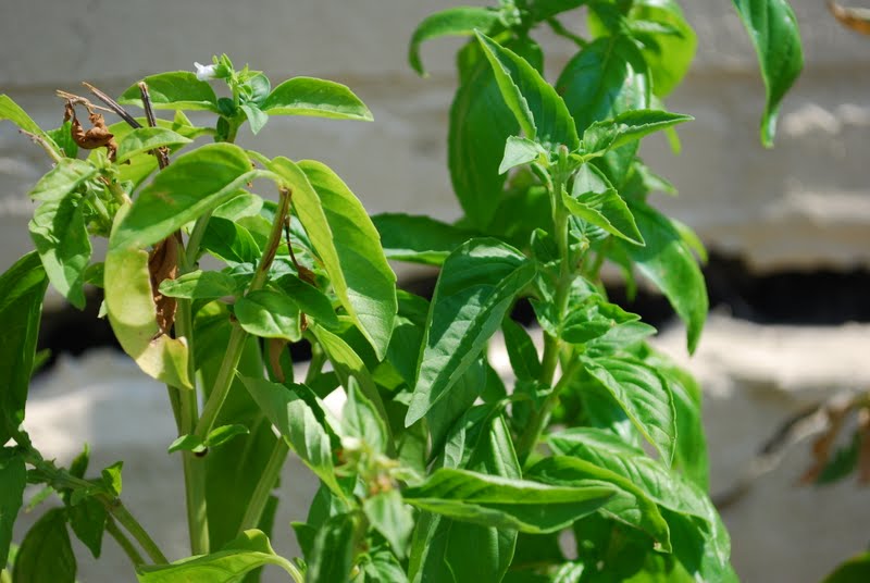 The basil and mint have been holding up well, and don't seem to mind the heat as much as us constantly picking the leaves to use.