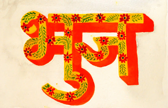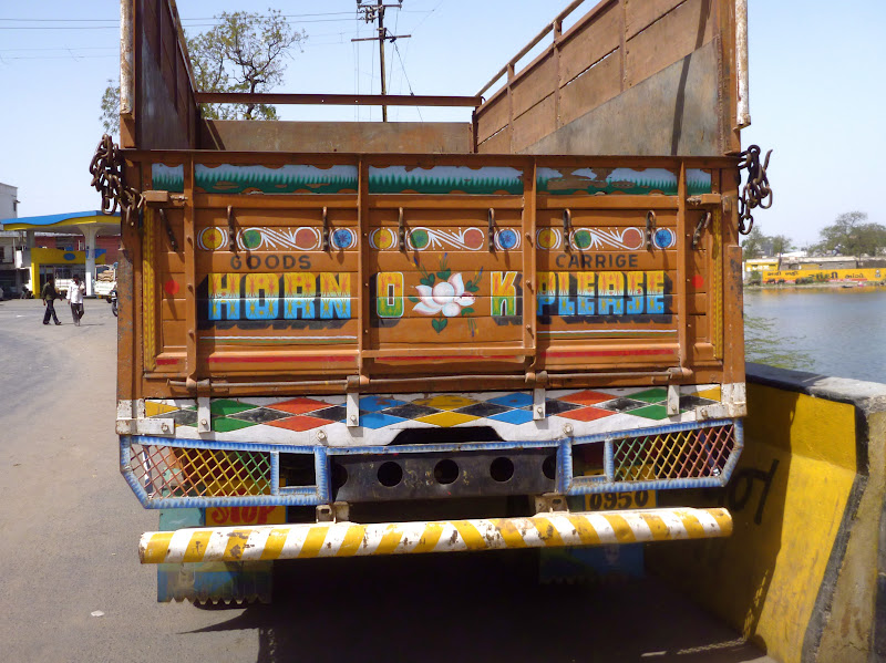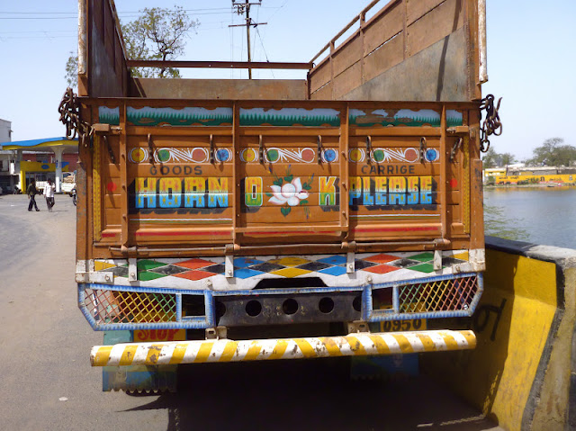 The paintings above say "Bhuj" in Hindi (not the language of Kutch, but one that I can write) and I painted them in the style of the highly decorated trucks you see thundering dangerously down every road in India.