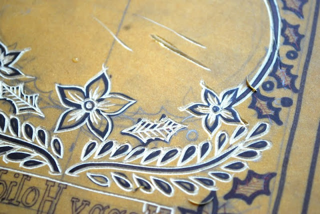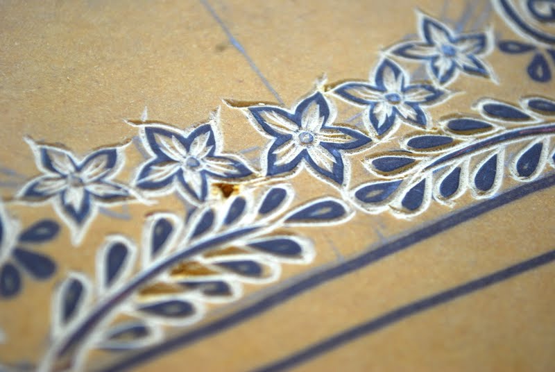 Before you ask, I don't know Jenny and Peter, they give you stock photos to use in the mock card. The design was carved from linoleum and block printed, and then I added the text and photo digitally. I took a few pictures of the carving process to show you: