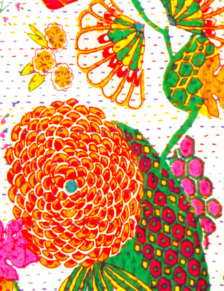 I stumbled across another updated version of Ralli quilts this weekend, from LA-based designer Heidi Merrick. Her combination of modern prints with traditional embroidery is so beautiful I almost emptied my bank account and bought them all immediately when I clicked on her website. The green one is definitely going on my future wish-list.
