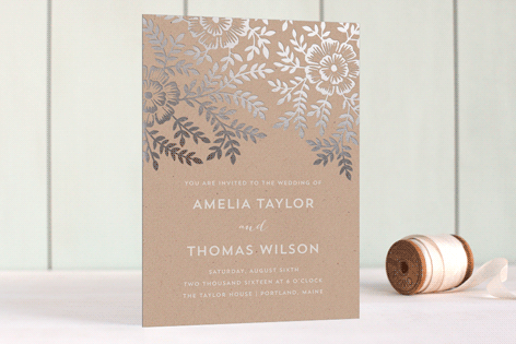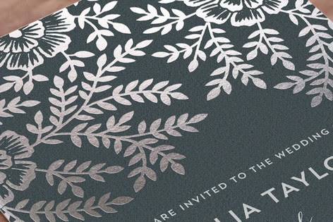 In the meantime, I have a few new exciting products available at Minted, including foil-stamped wedding invitations! Foil stamping is a process I don't use in my own studio (it's basically putting real metallic foil onto the paper) so it's really exciting to be able to offer it through Minted. Take a look: