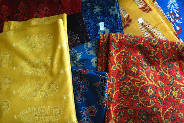 I have some ideas for how to use my giant piles of fabric, but I will keep that under wraps until the finished products are ready. And I'm sure I'll be collecting just a few (read: a lot) more prints once we get to Kutch.