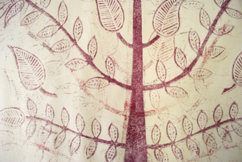 The presses are covered in "felts," which are several layers of felt in varying thicknesses. This pads the block while it's going through the press, and you need a layer of paper between the block and the felt to stop the ink from transferring everywhere. The paper gets this fuzzy multiple-exposure print on it after a few runs.
