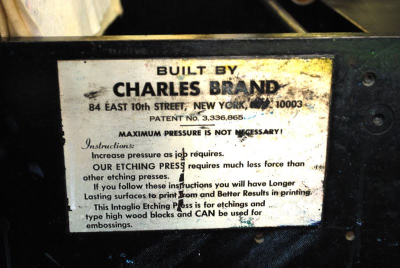 I use a rented etching press to make the prints. I would love to have one of my own, and recently saw an ad for one that was in my price range, but getting a five-ton press into my sixth floor apartment would be a huge challenge. Plus, it would take up the remaining five square feet that isn't already filled with prints, so I'll wait until a more appropriate time to buy.