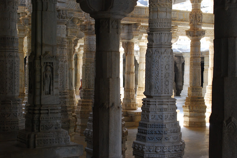 Two hours from Udaipur is Ranakpur, a Jain temple that must be one of the most intricately carved buildings in the world. Every surface is covered with tiny details and carved patterns, making the whole thing look like an iced birthday cake. The temple is not very big, but we spent hours walking around in circles, taking in every detail. Every time I walked around, I would find some new carving that hadn't stood out before; I must have circled the temple ten times.
