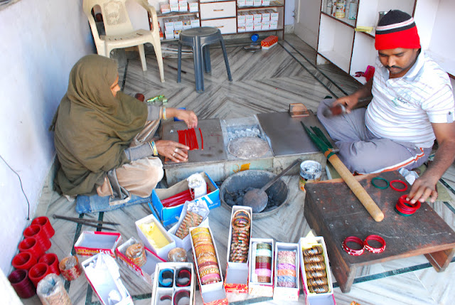 I used the opportunity to practice some Hindi with our guide, which got some stares as we walked around the village. When we went back to his house for chai, I introduced myself, Joe, and my mom to his sister and niece. When introducing Joe, instead of using the formal term for "husband/(or boyfriend, if you aren't hiding the fact that you aren't married in a conservative country)" I used the slang term, "admi" (meaning man), which I had learned in conversation with someone else. Hearing a slang word come out of my mouth sent screams of laughter around the house as they cried out "Admi! Admiiiiii!" and clutched each other. Imagine a foreigner coming to your house and stammering "Zis...iz....my boo." After their invitation to come and live with them (which I did consider), we headed back to the hotel, miniature painting in tow.