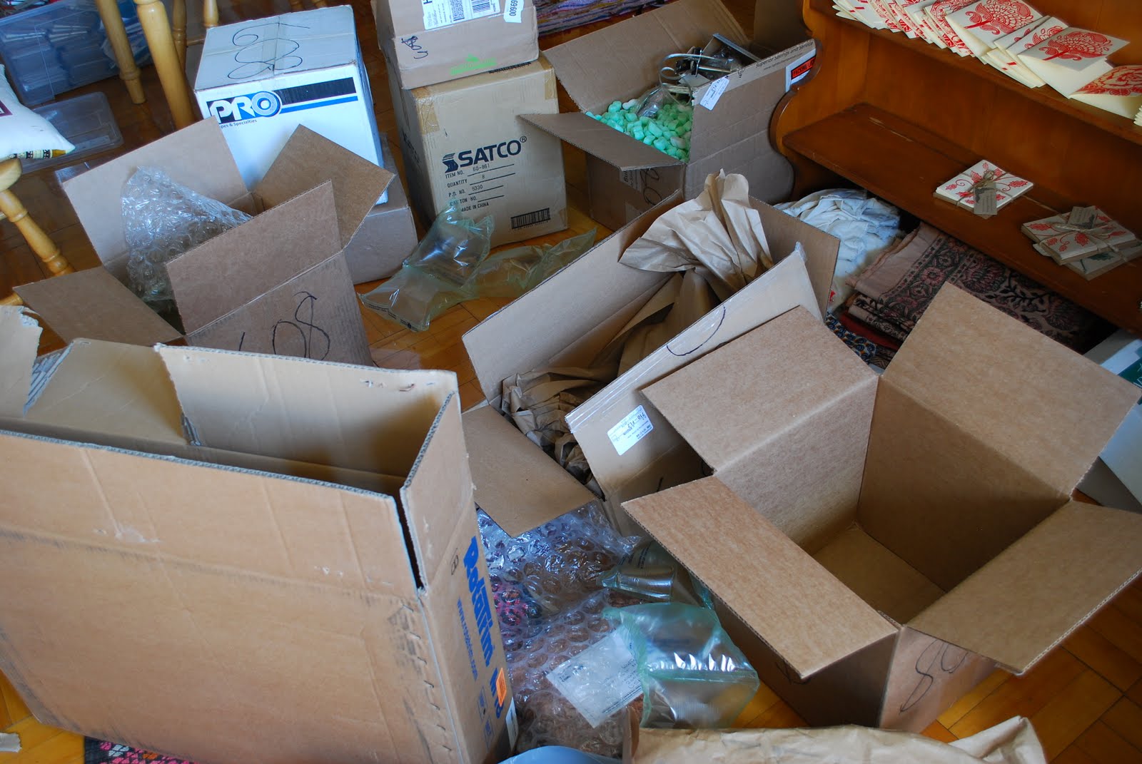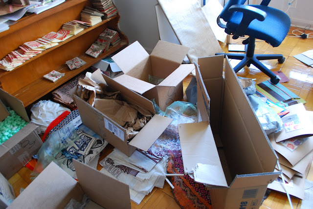 The National Stationery Show is only three weeks away, and my life is completely revolving around preparation. My 700 square foot apartment, which has always seemed so luxuriously spacious, is starting to feel extremely cramped as more and more boxes full of display materials, order forms and supplies arrive. The shelves, desk, dining room table and floor are all completely covered with materials.