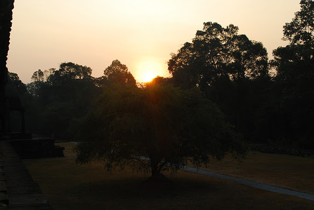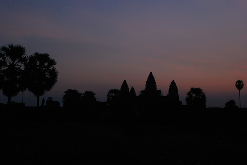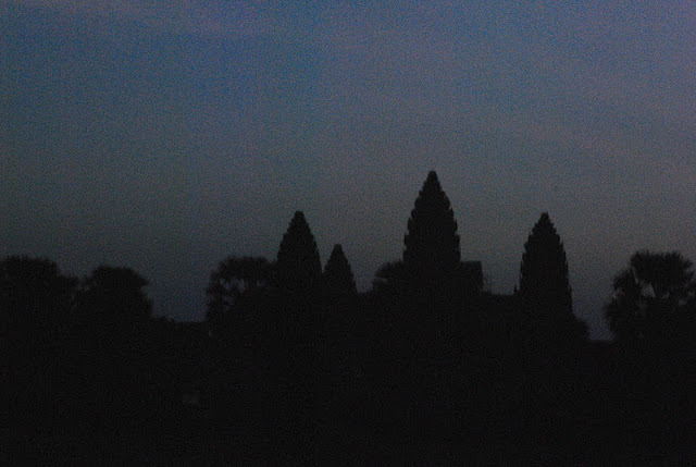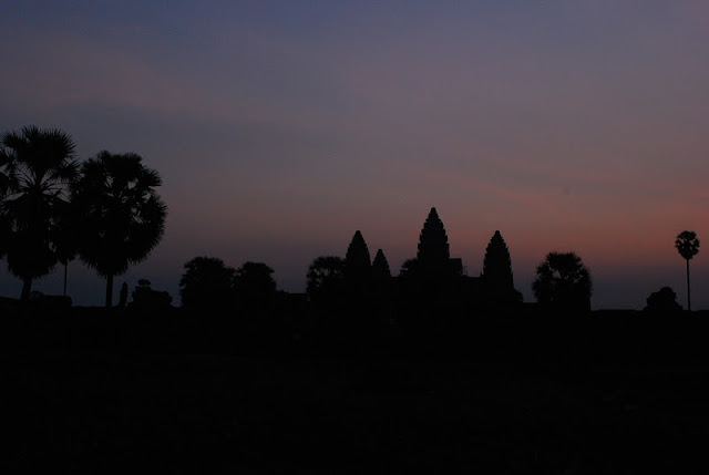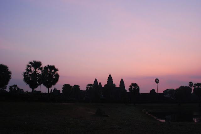 On our third day in Siem Reap, we woke up at 4:30 am and took a tuk-tuk in the dark to get to Angkor Wat before sunrise. It was pitch black when we arrived, and we slowly felt our way over the entrance bridge to watch the sunrise. Just because it was 4:30 am doesn't mean we had the place to ourselves, it was actually packed with tourists who all had the same idea. But we got to see the shadow of Angkor Wat emerge from the darkness as the sun slowly came up in the background.