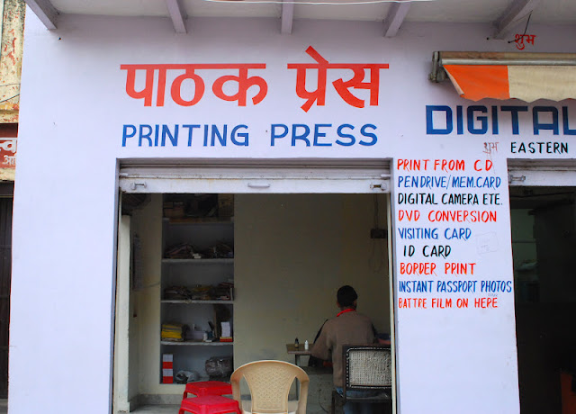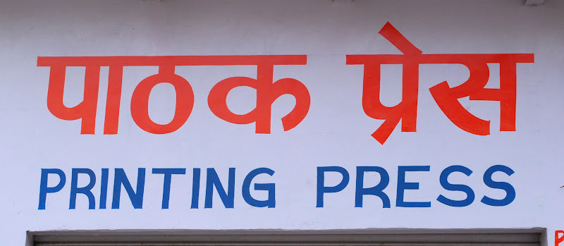 We walked by this little printing shop one afternoon, and I stopped to translate the sign. It says "Patak Press" I believe, but I couldn't find a translation for "Patak," maybe the name of the family that owns it? Or does it mean "Printing"? I can usually read the signs, but have no idea what they mean. Are there any Hindi speakers reading?
