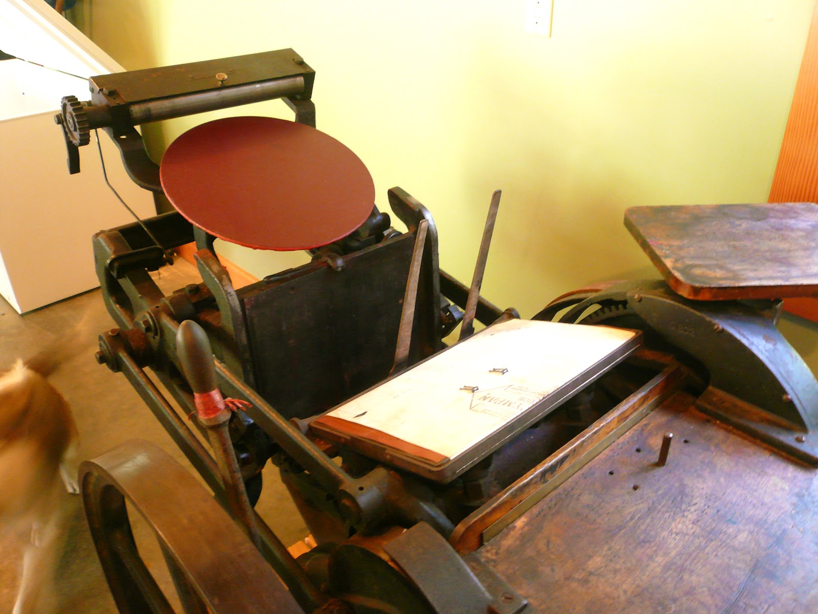 With all the orders coming in, it has been impossible to keep up while printing everything by hand. So in order to speed up the process, some of the prints will now be done on a letterpress. First it needs to be cleaned and oiled and it needs new rollers, but once we get it going I can start printing blocks on the press!