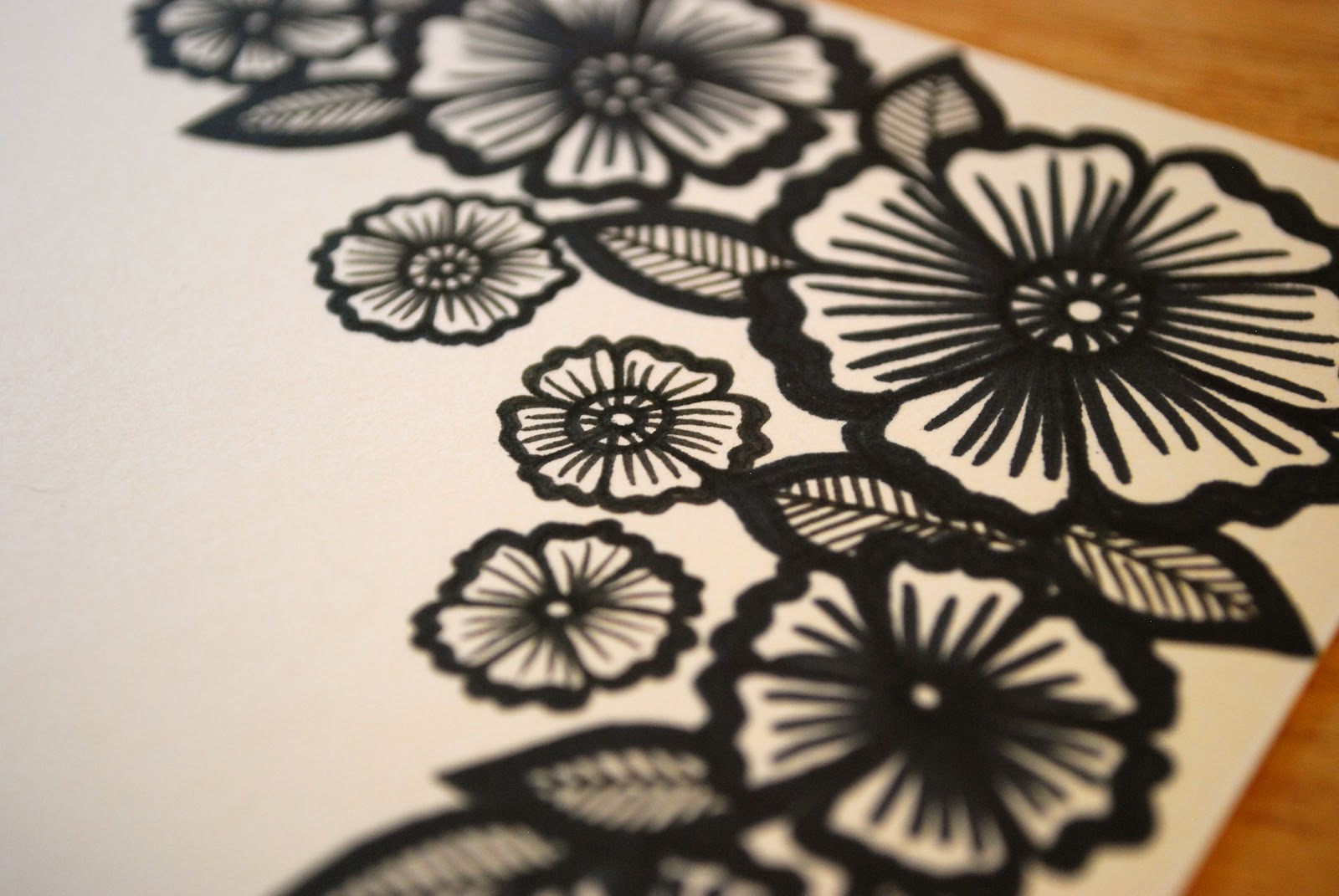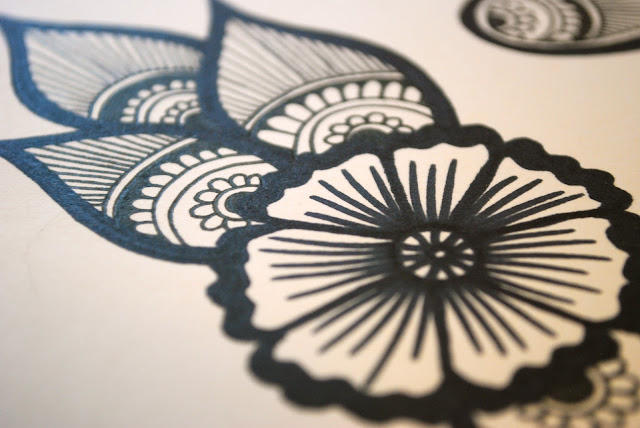 Working on some sketches for a custom wedding invitation this week; I love the way the second flower came out so much I'm thinking of turning it into a block print.