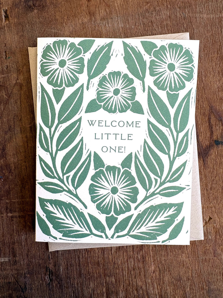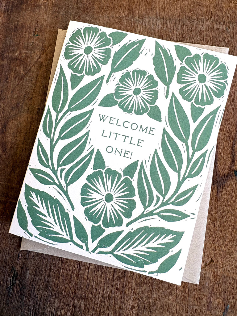 For her offset printed cards, Katharine begins each greeting card design with a sketch, watercolor painting or hand-carved linoleum block, which is digitally translated and later, individually printed by our printing partners.