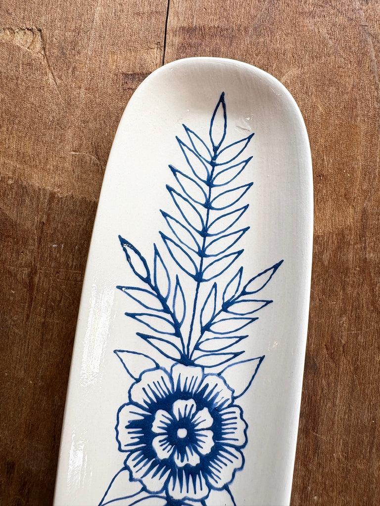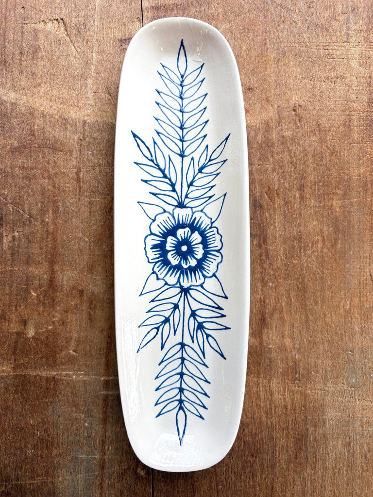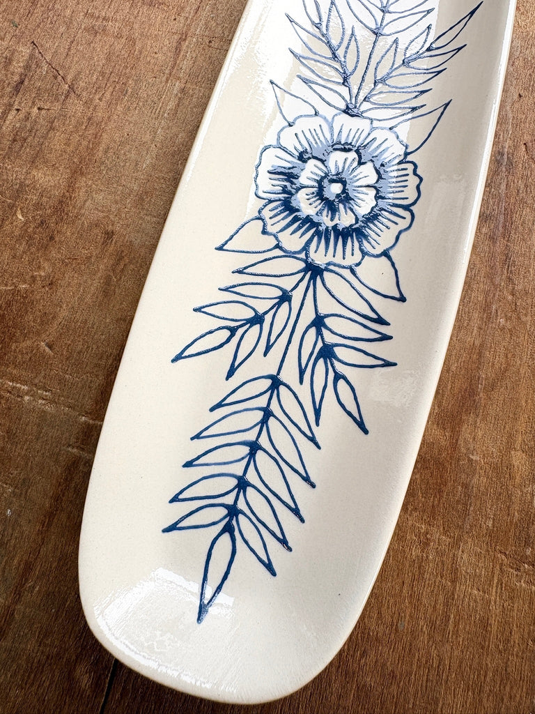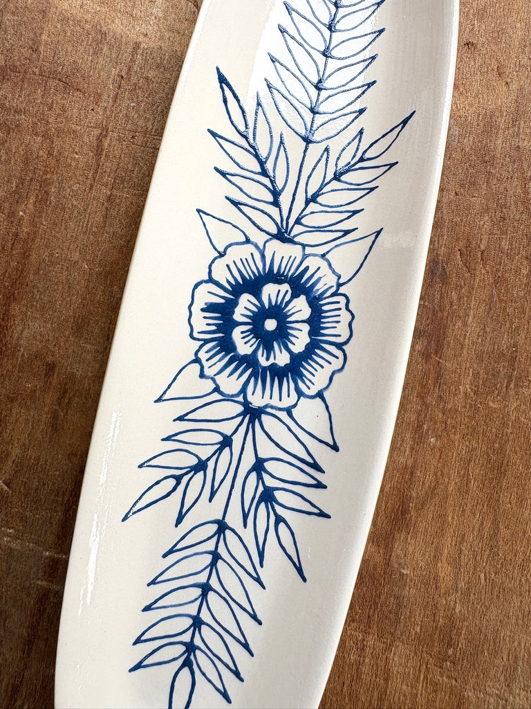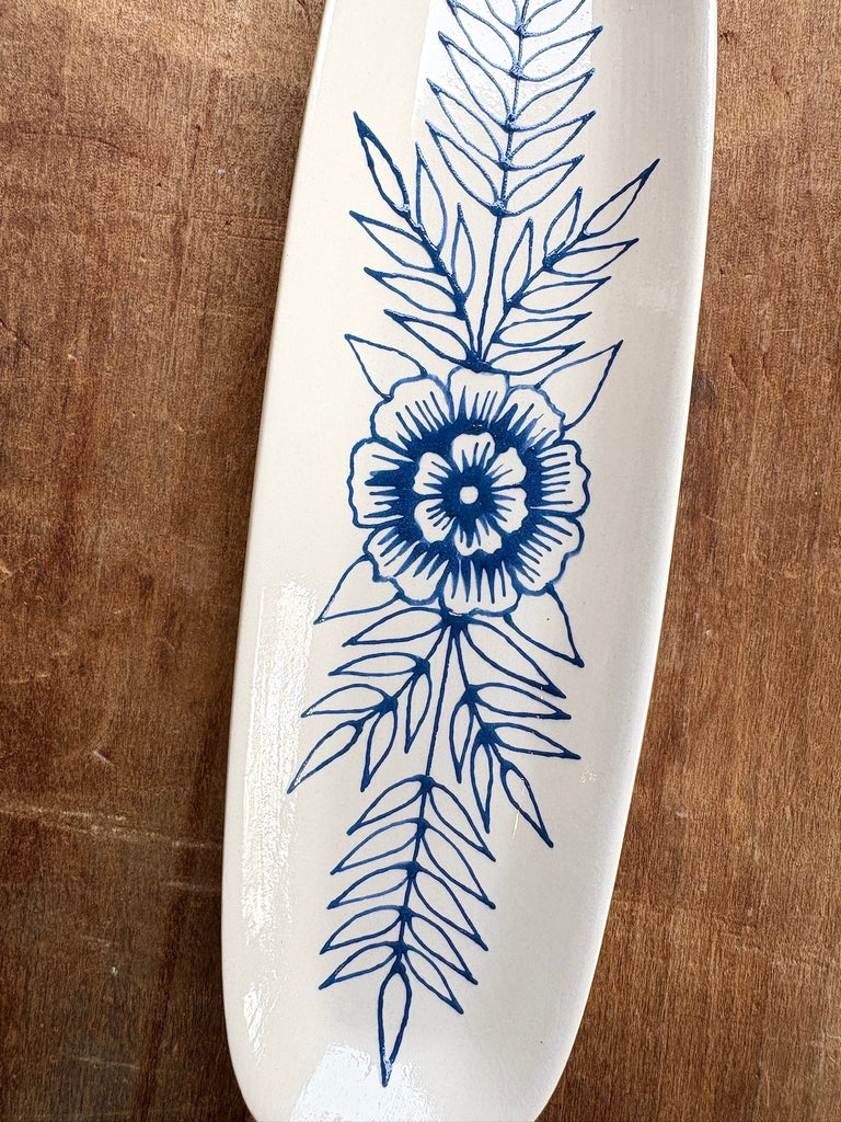 This ceramic dish features a one-of-a-kind original hand painted design by Katharine Watson.