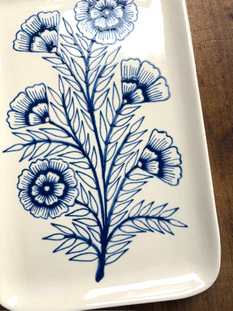 This ceramic tray features a one-of-a-kind original hand painted design by Katharine Watson.