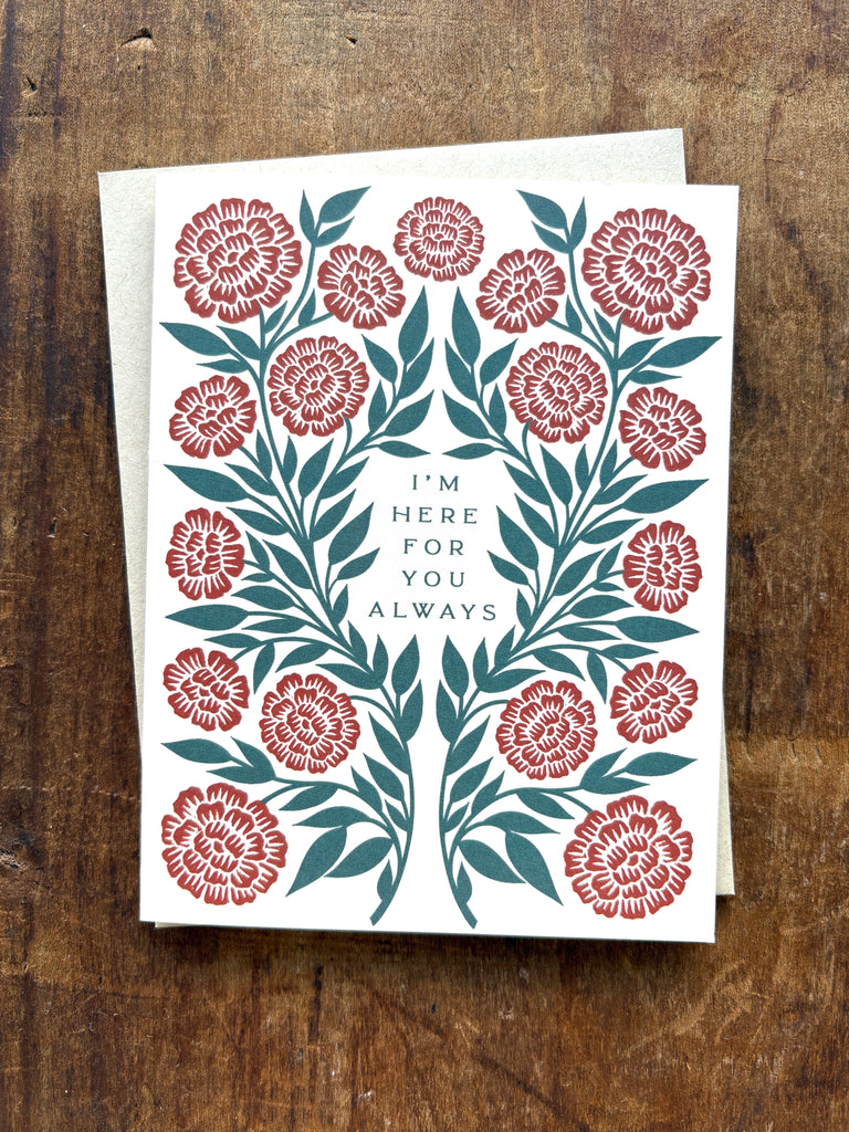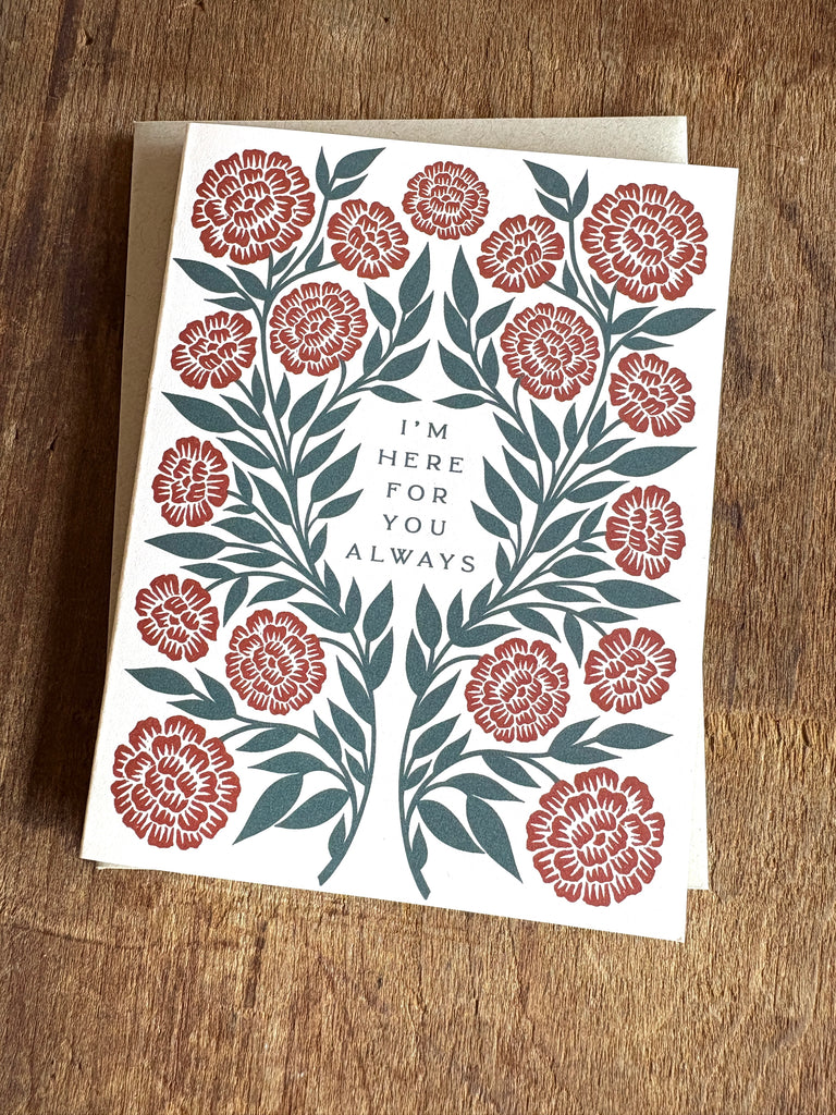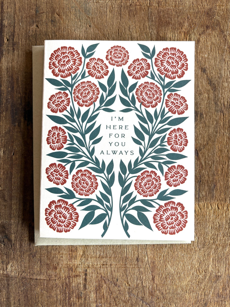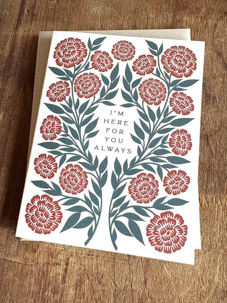 For her offset printed cards, Katharine begins each greeting card design with a sketch, watercolor painting or hand-carved linoleum block, which is digitally translated and later, individually printed by our printing partners.