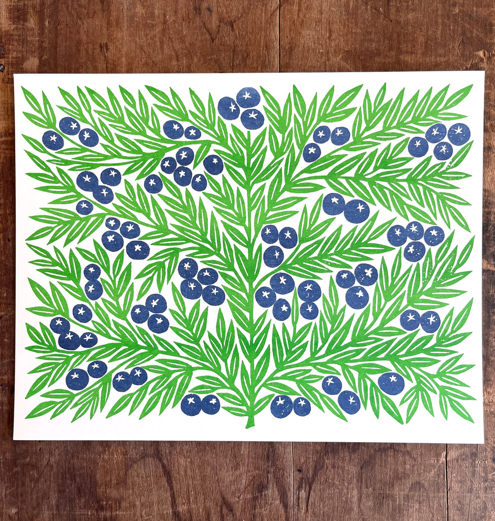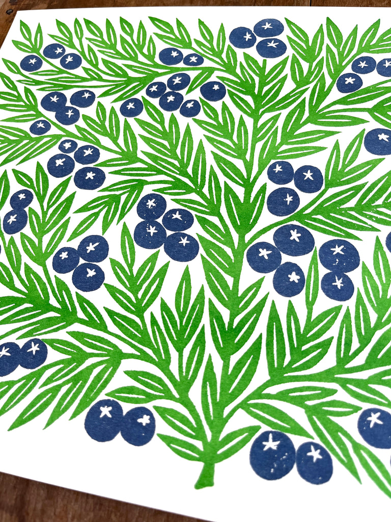 Garden Series: Blueberries Risograph Print
