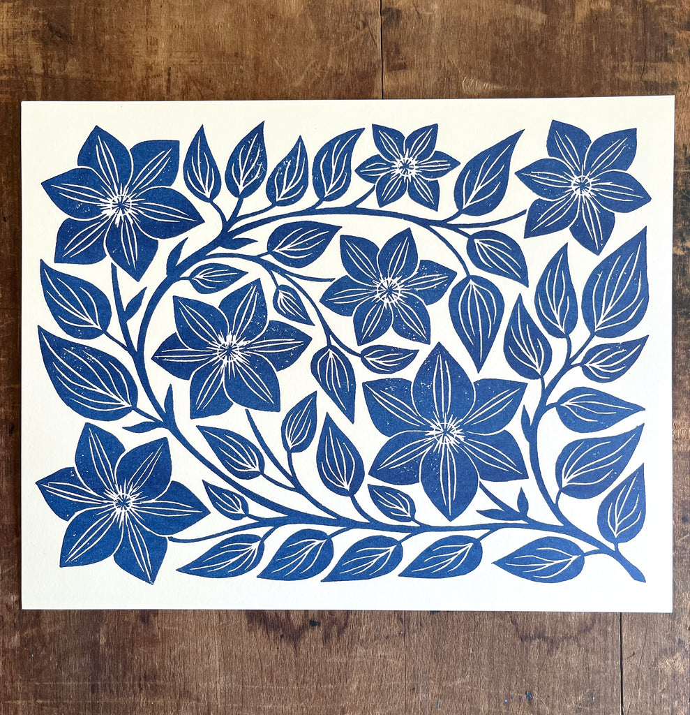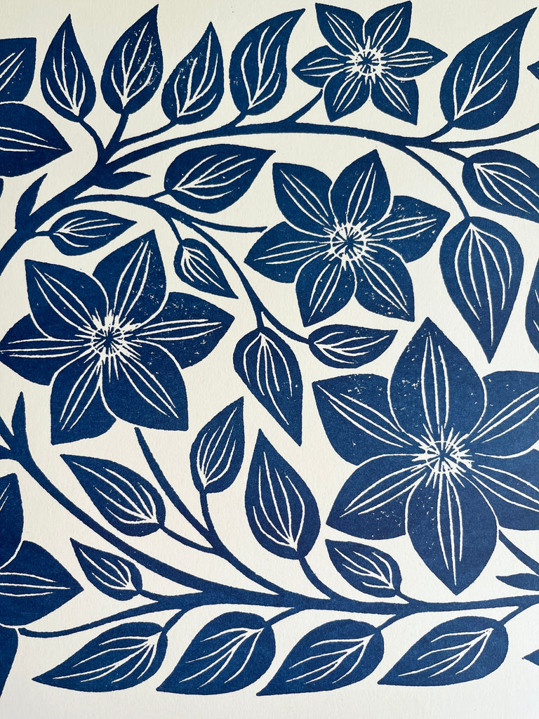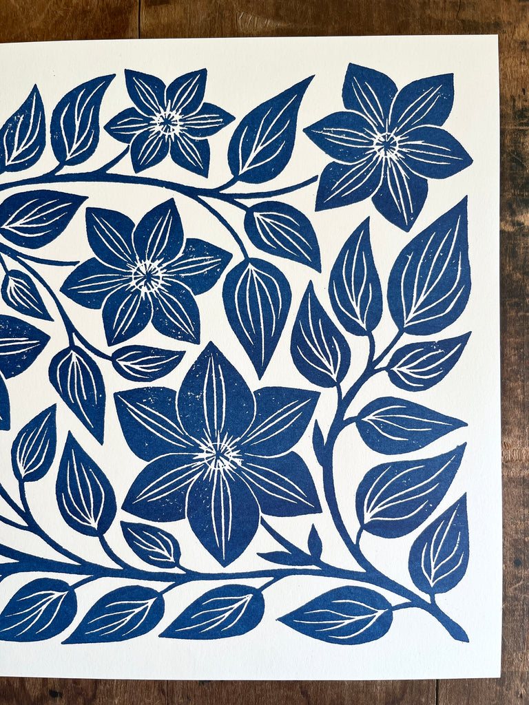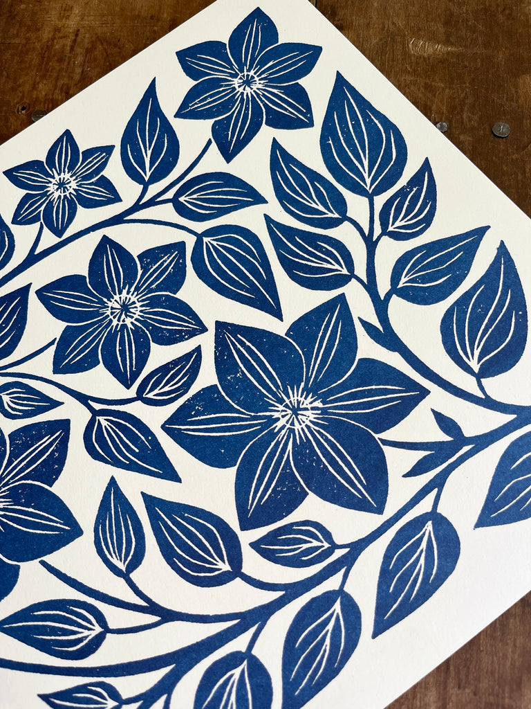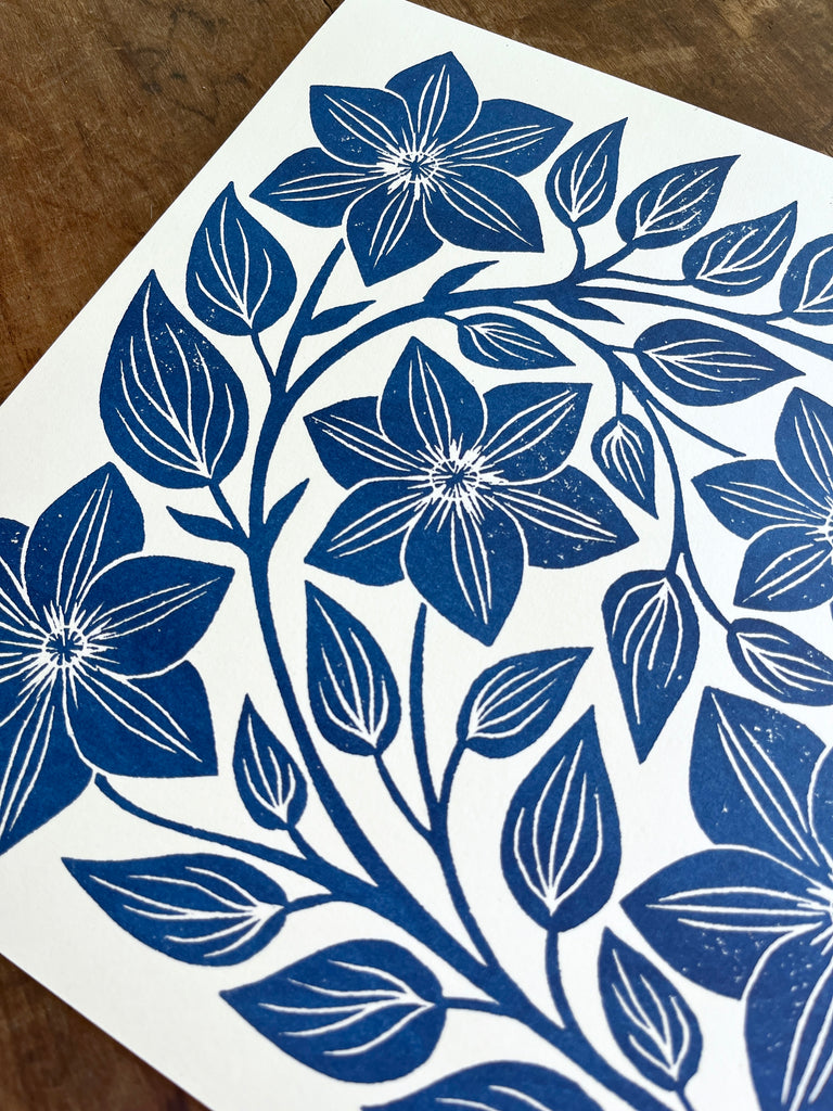 Garden Series: Navy Clematis Risograph Print