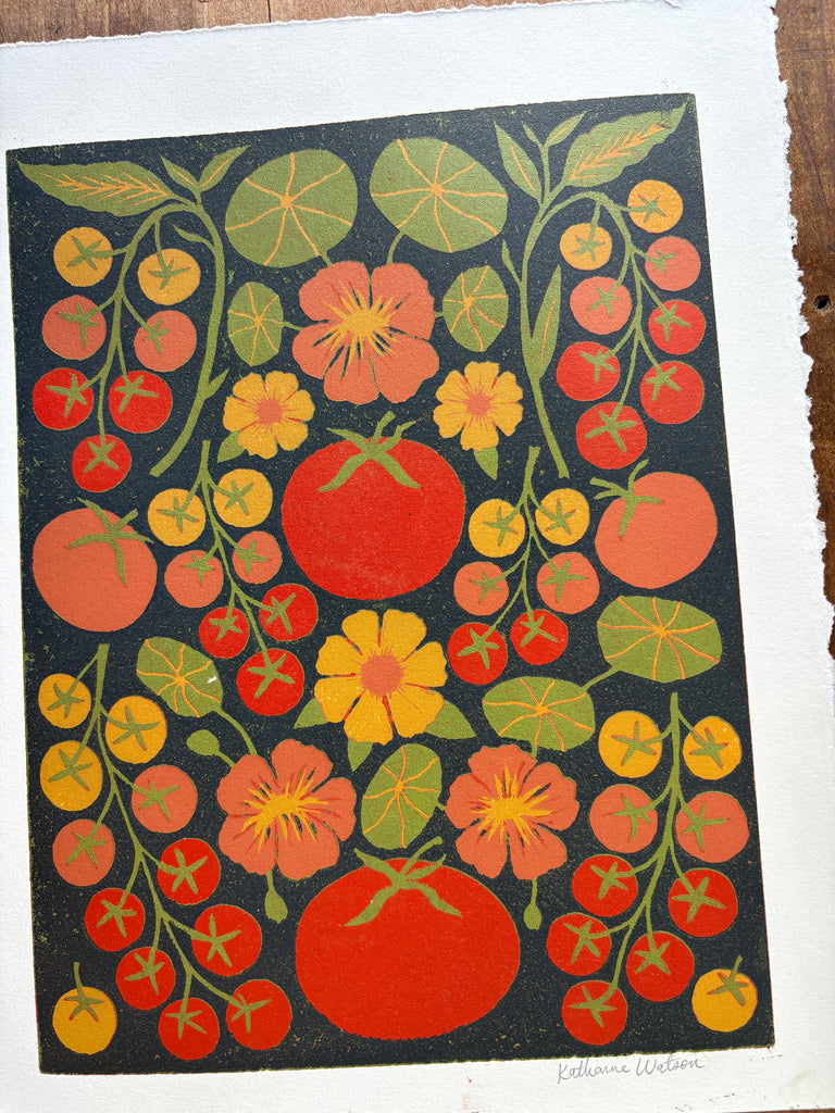 An original Katharine Watson reduction block print, individually printed in our Portland, Maine studio.