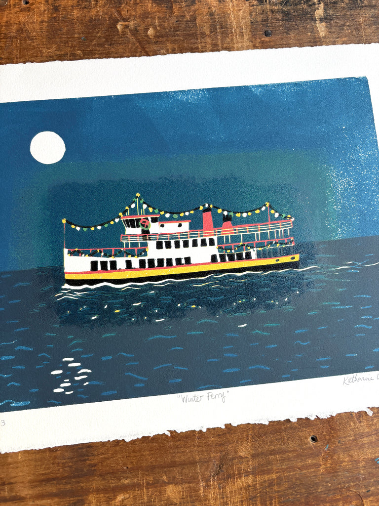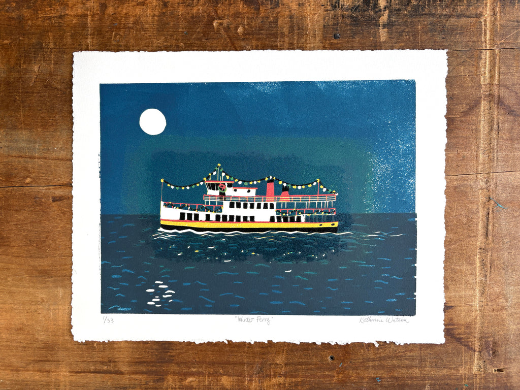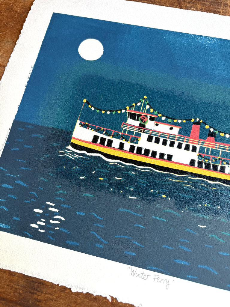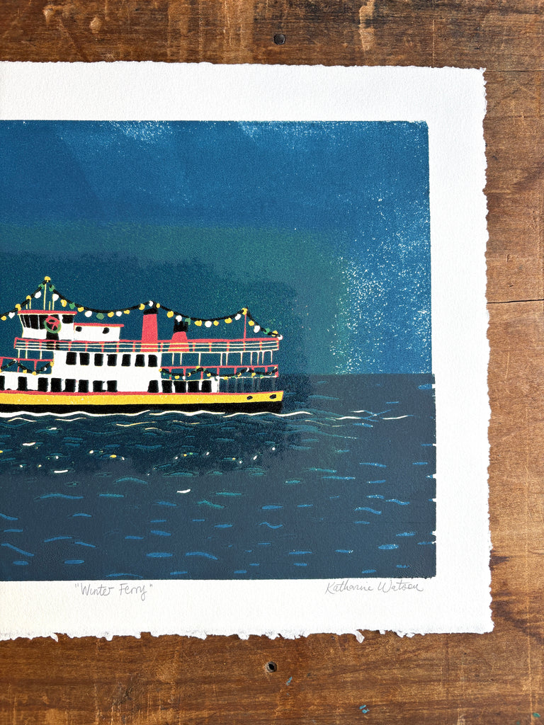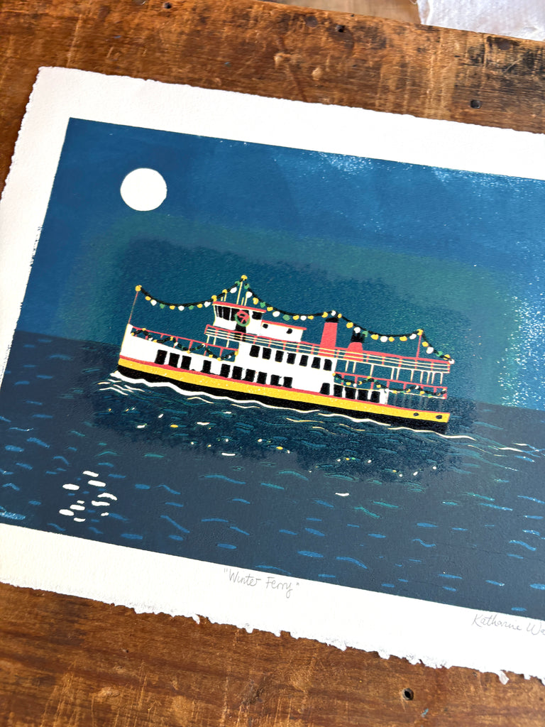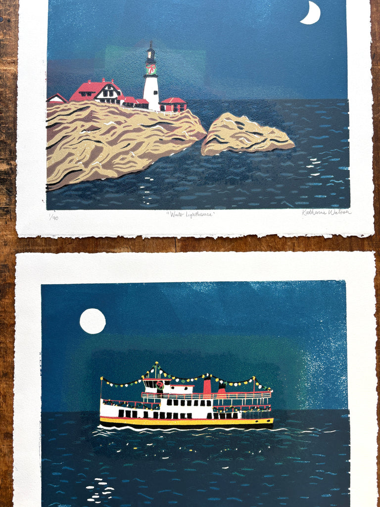 An original Katharine Watson reduction block print, individually printed in our Portland, Maine studio.
