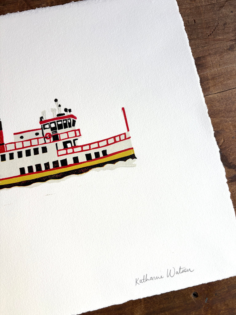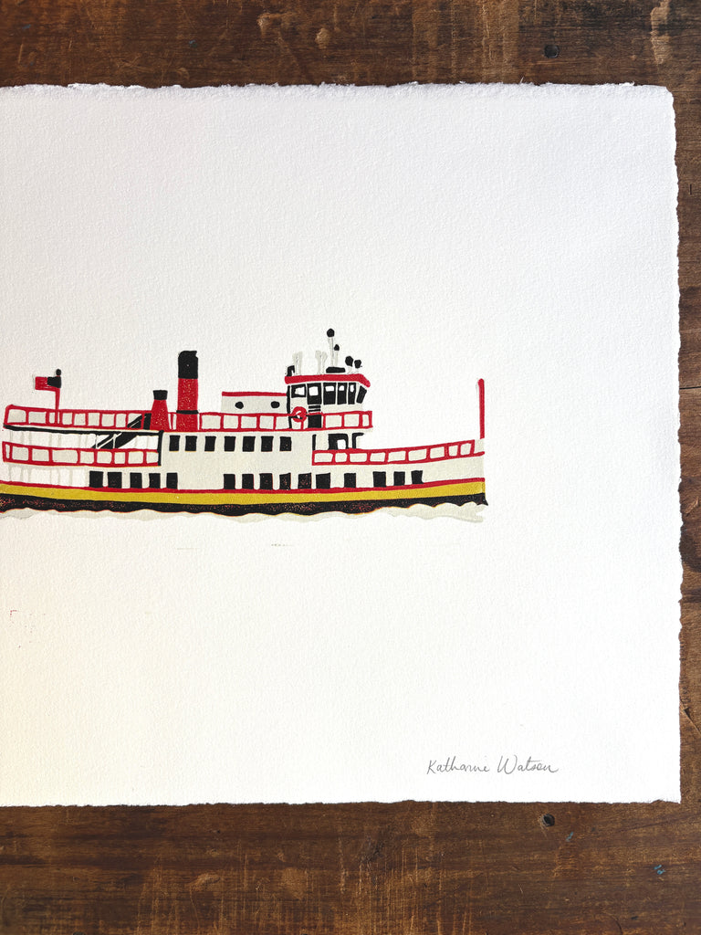 An original Katharine Watson reduction block print, individually printed in our Portland, Maine studio.