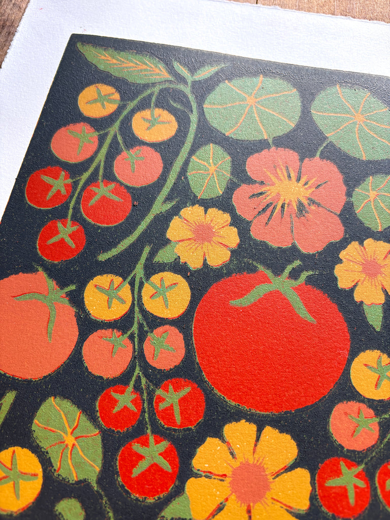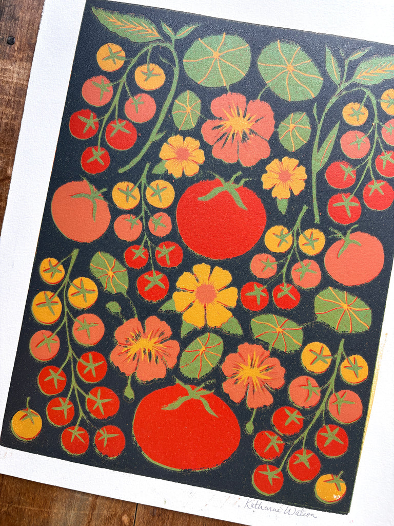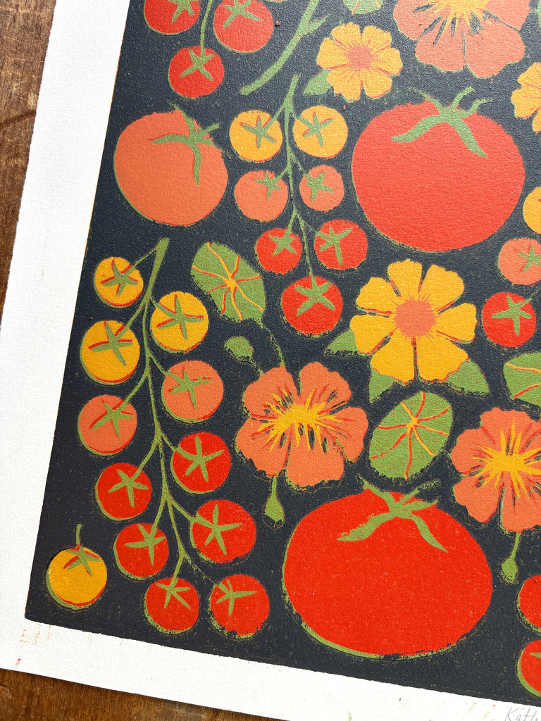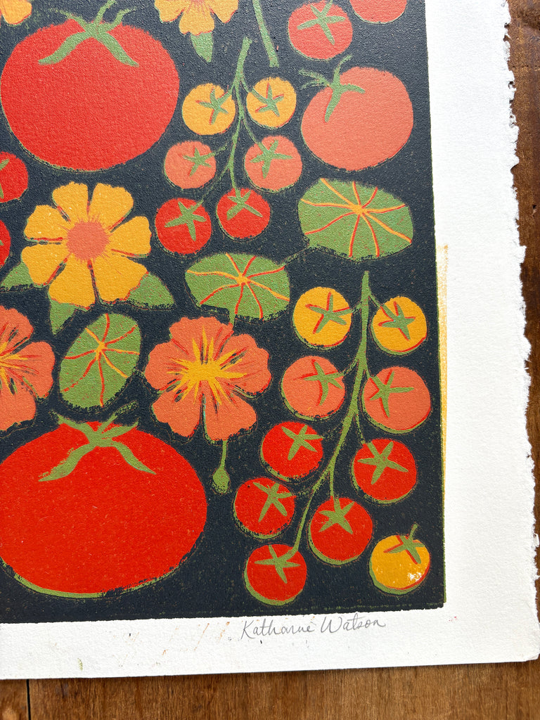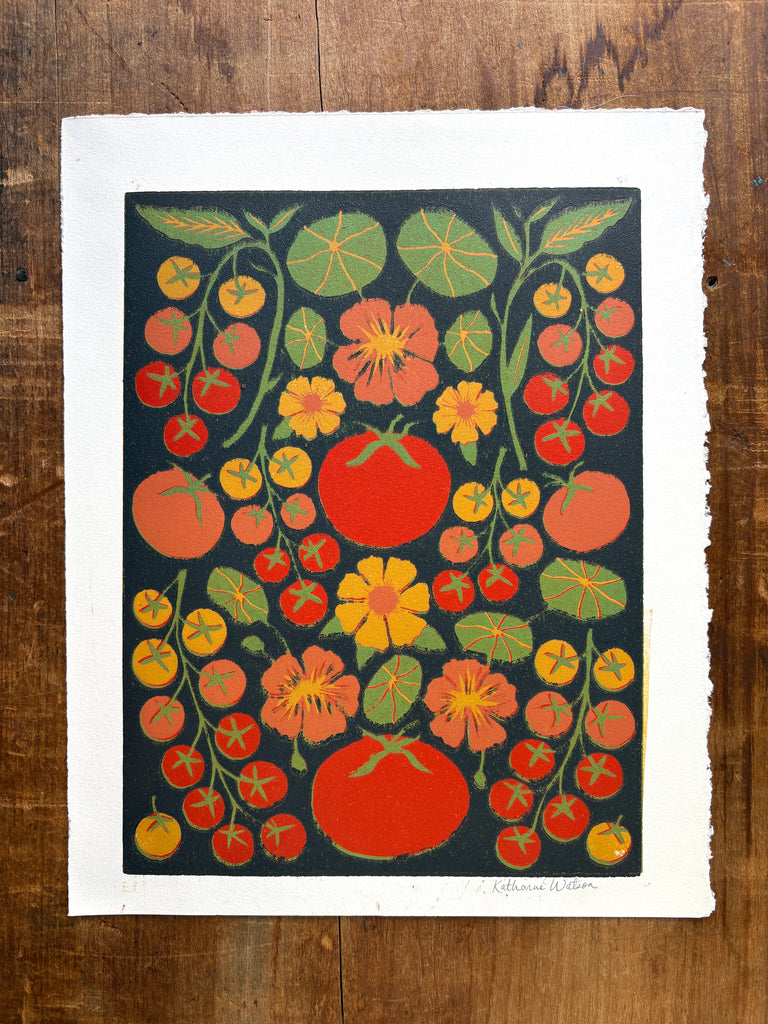 SECONDS: Hand Block Printed "Tomatoes" Reduction Print - 3