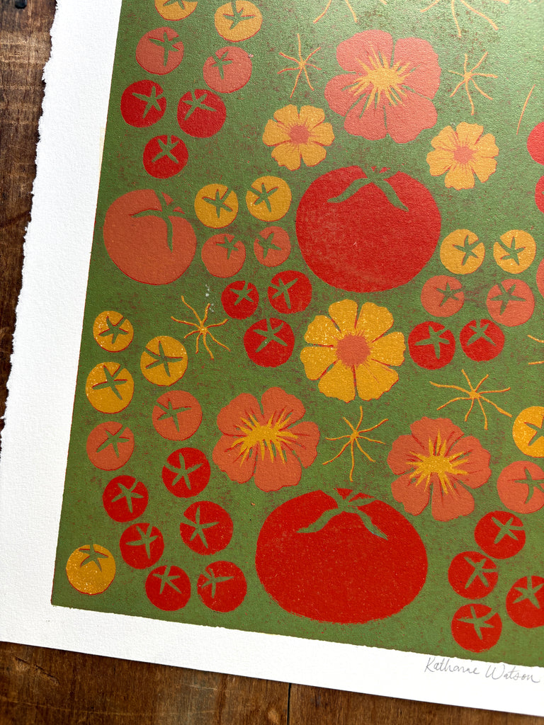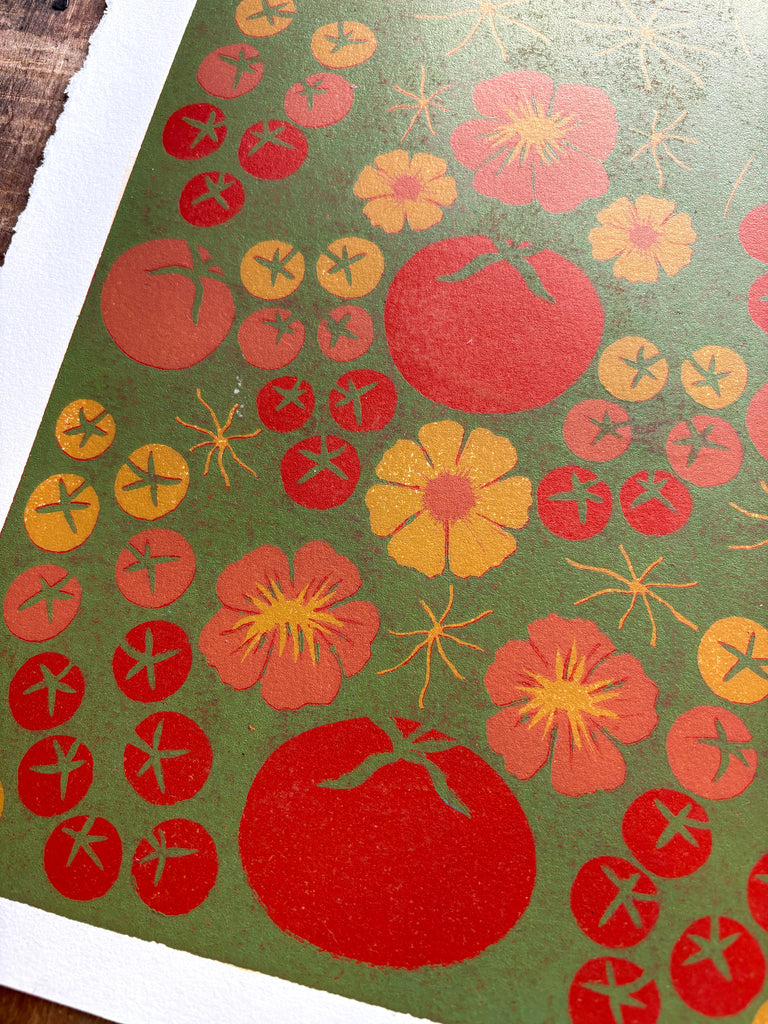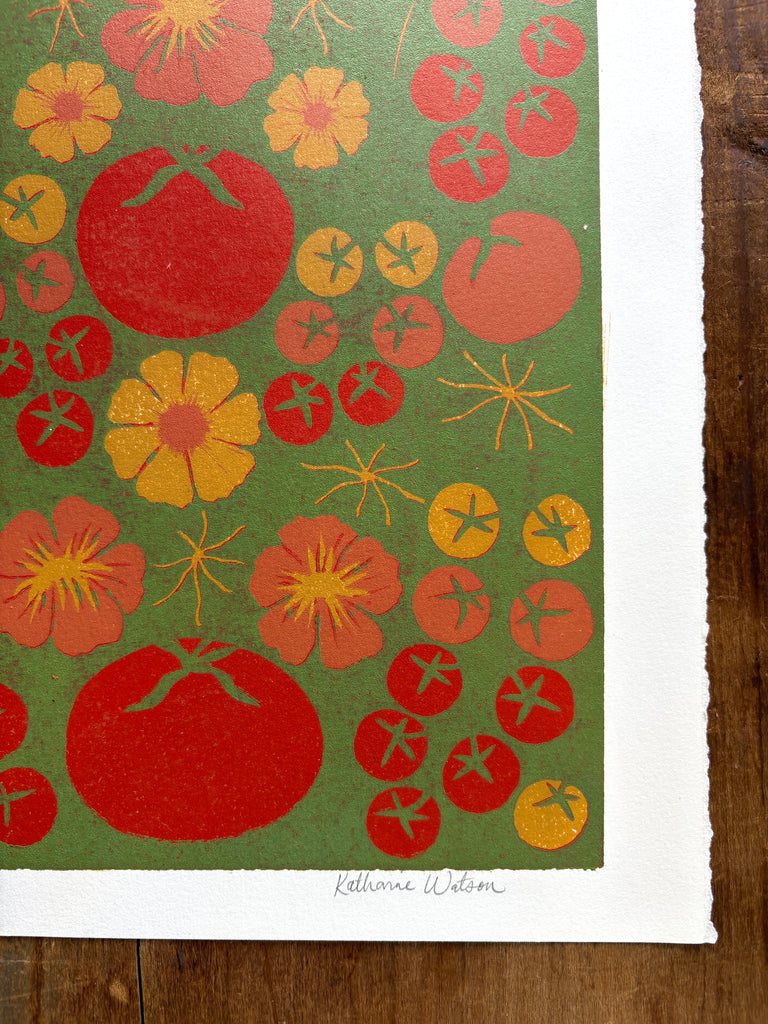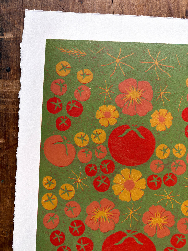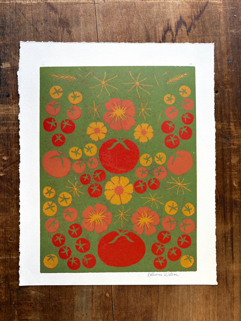 SECONDS: Hand Block Printed "Tomatoes" Reduction Print - 2