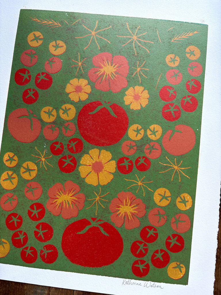 An original Katharine Watson reduction block print, individually printed in our Portland, Maine studio.