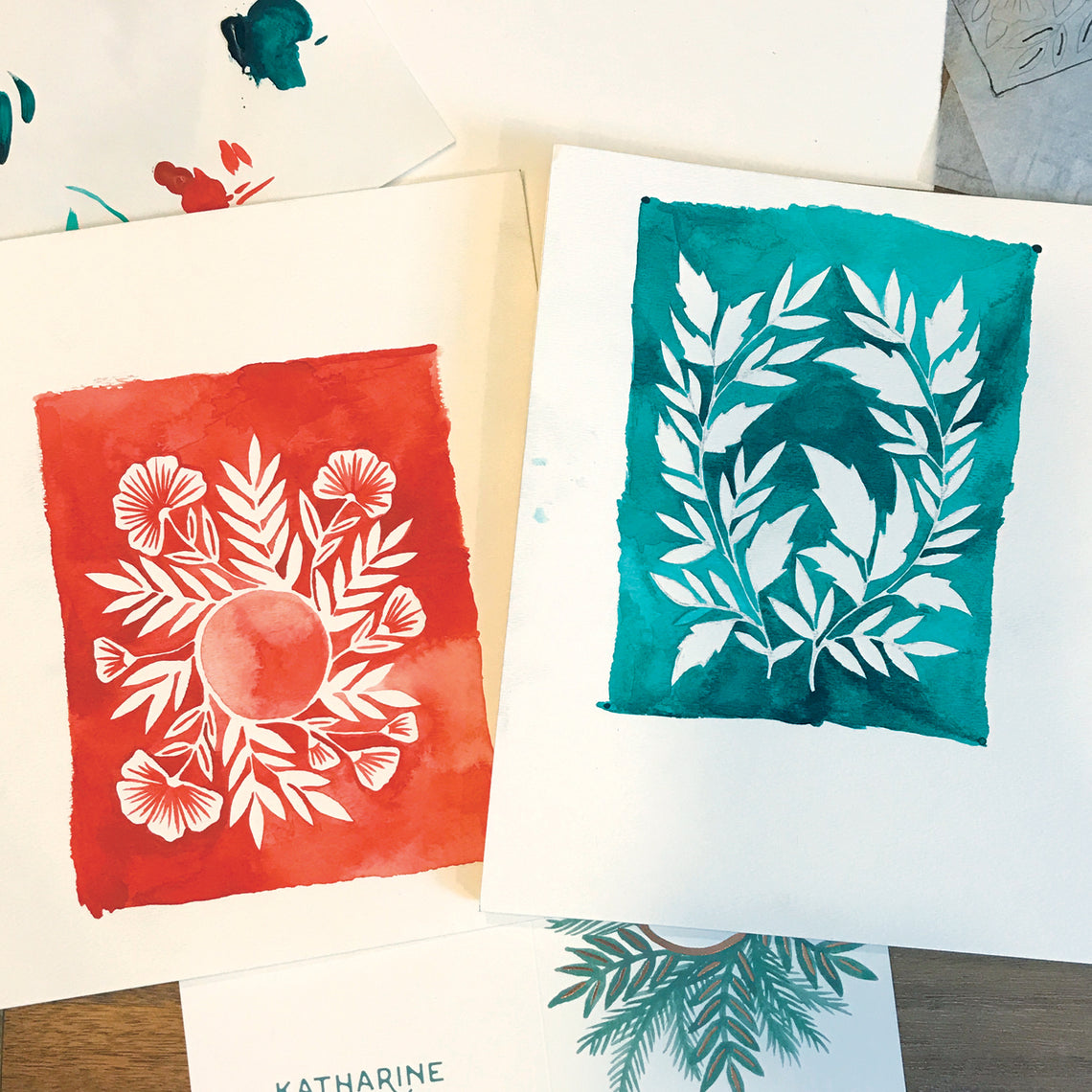 Block printing is a hands-on process that's been passed down across cultures for centuries. Katharine Watson's printed and painted designs all begin with original sketches that are then either hand-painted with watercolor or gouache, or carved into a block of linoleum.